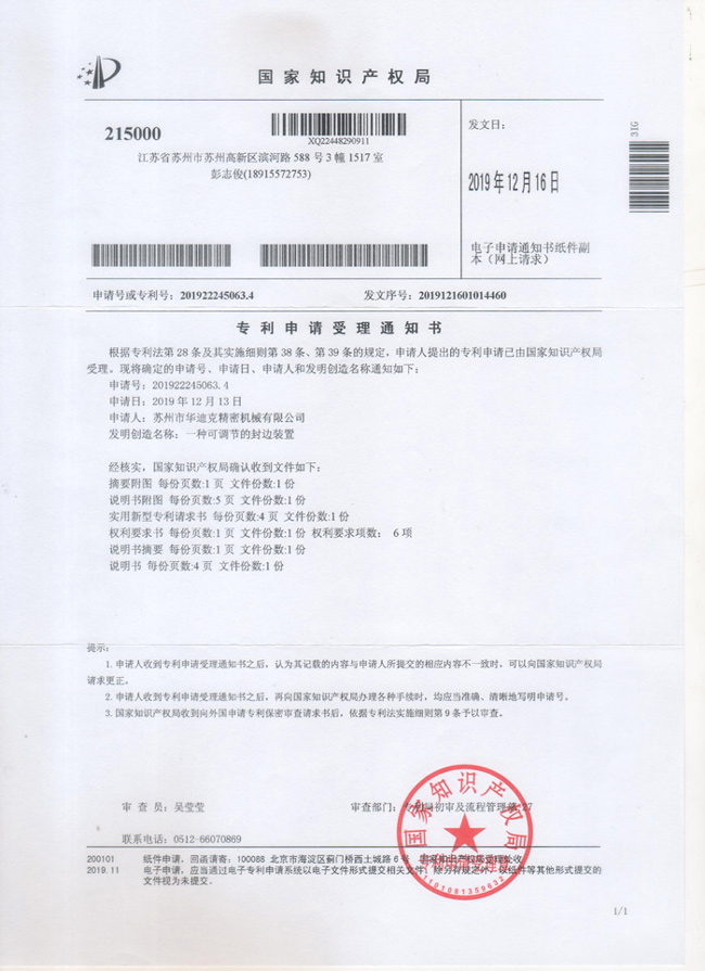 專利申請受理通知書201922245063.4